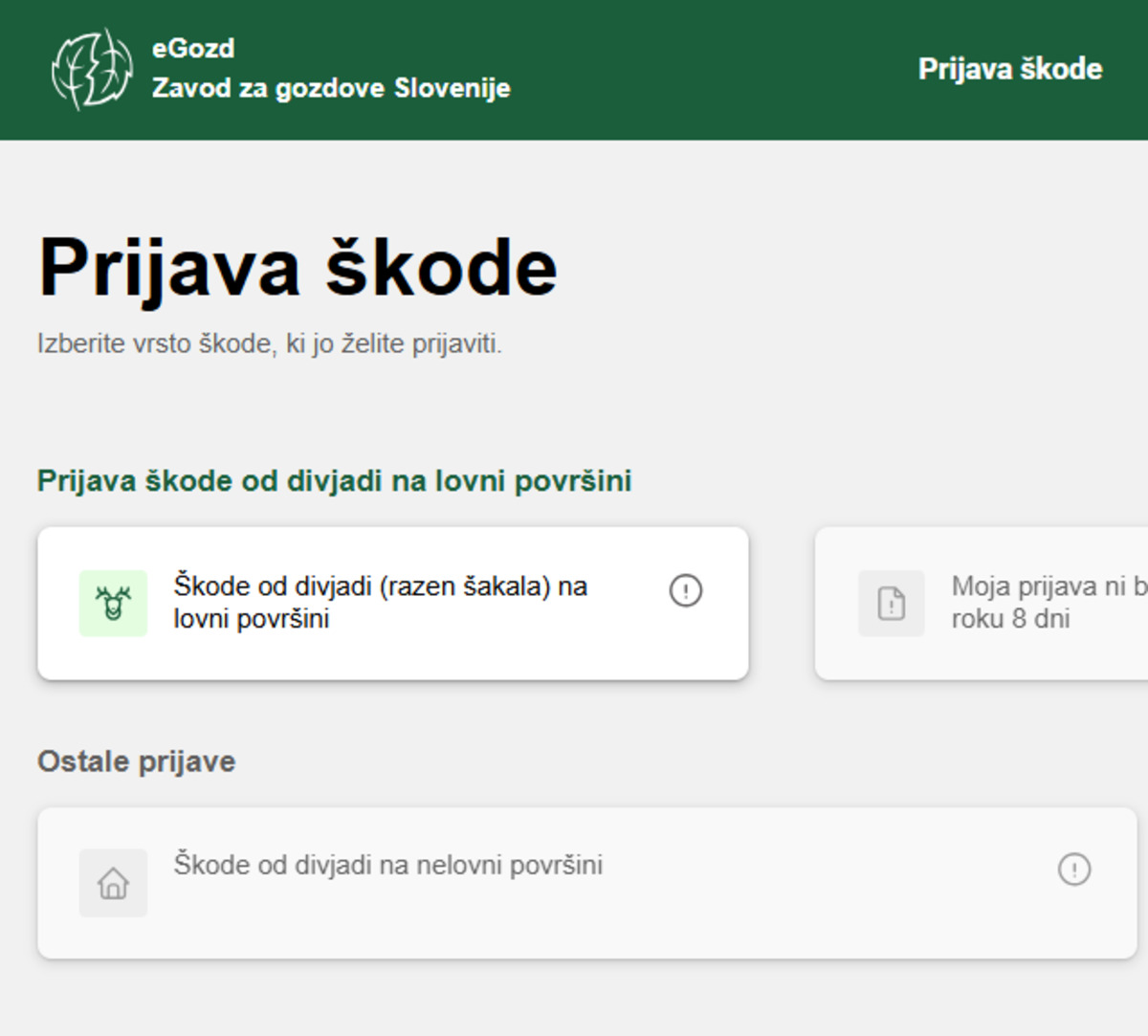 Elektronska prijava škode, ki jo povzroča divjad