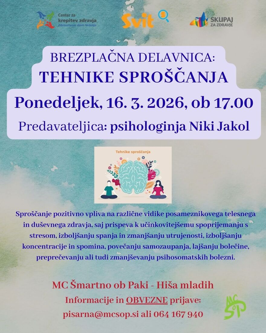 BREZPLAČNA DELAVNICA: TEHNIKE SPROŠČANJA