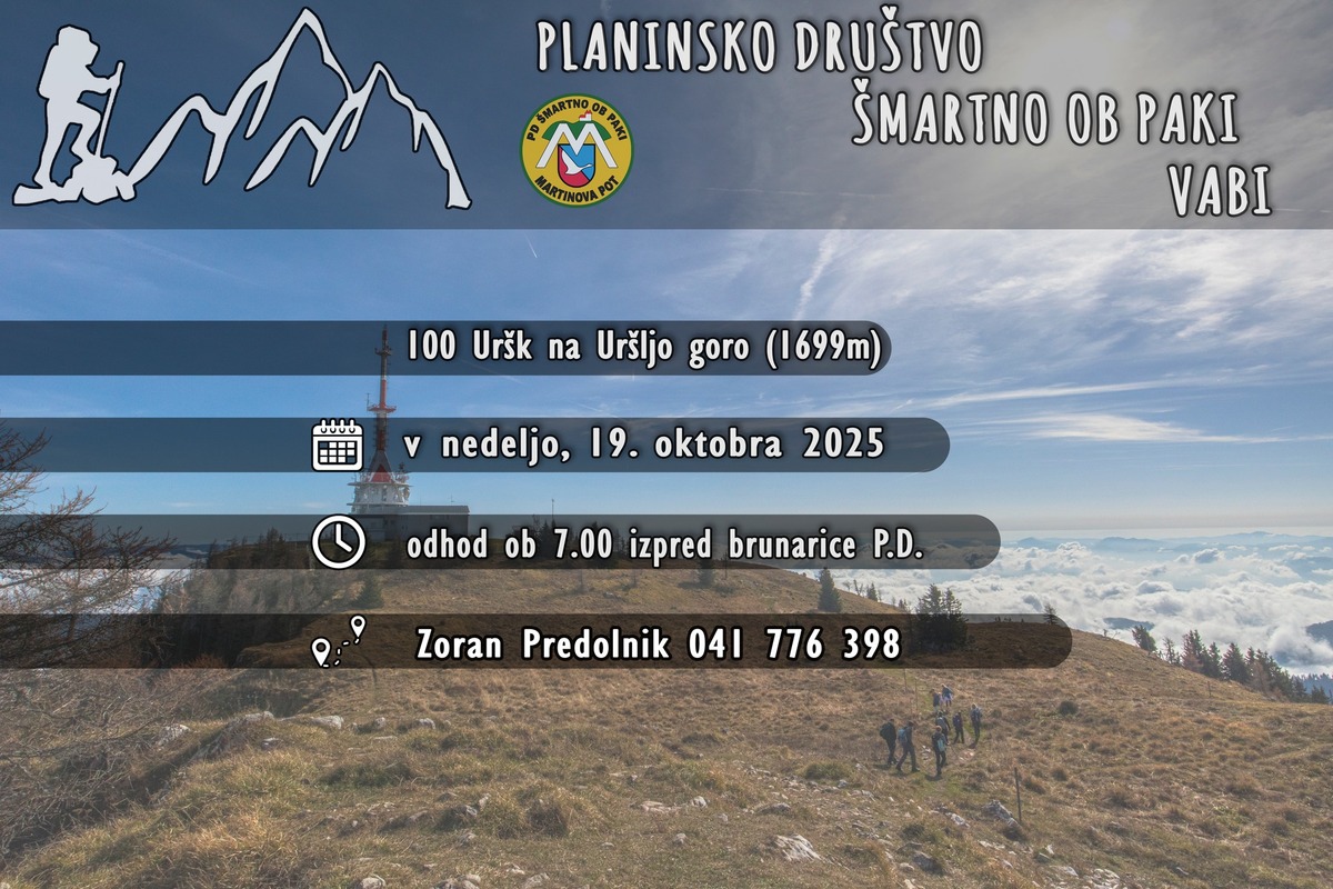 v nedeljo, 19. oktobra 2025, vas vabimo na pohod na Uršljo goro v počastitev godu Svete Uršule.