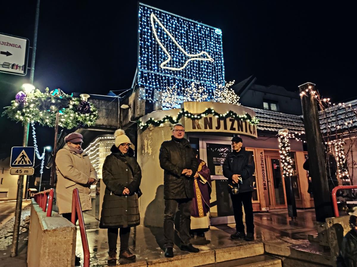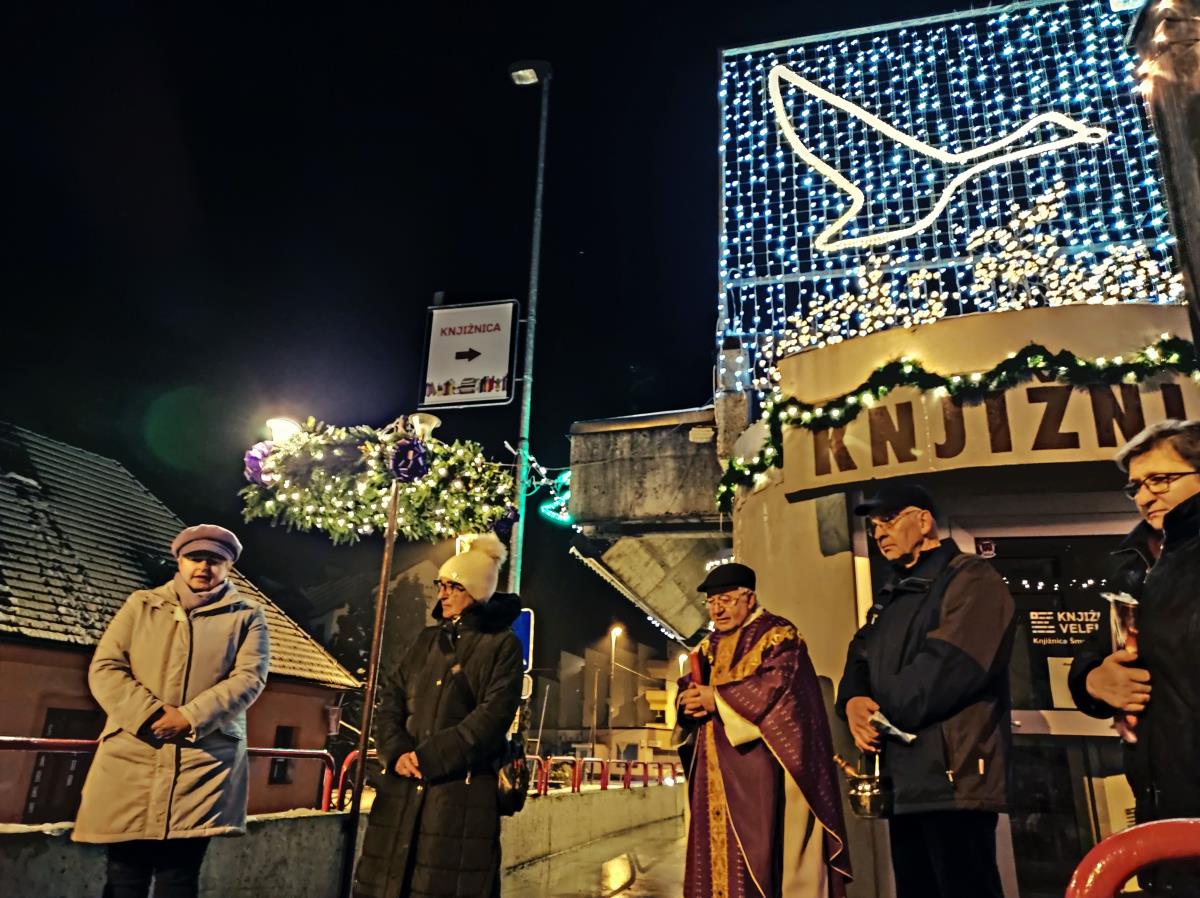 Blagoslov adventnega venca in prižig praznične razsvetljave pred občinsko stavbo
