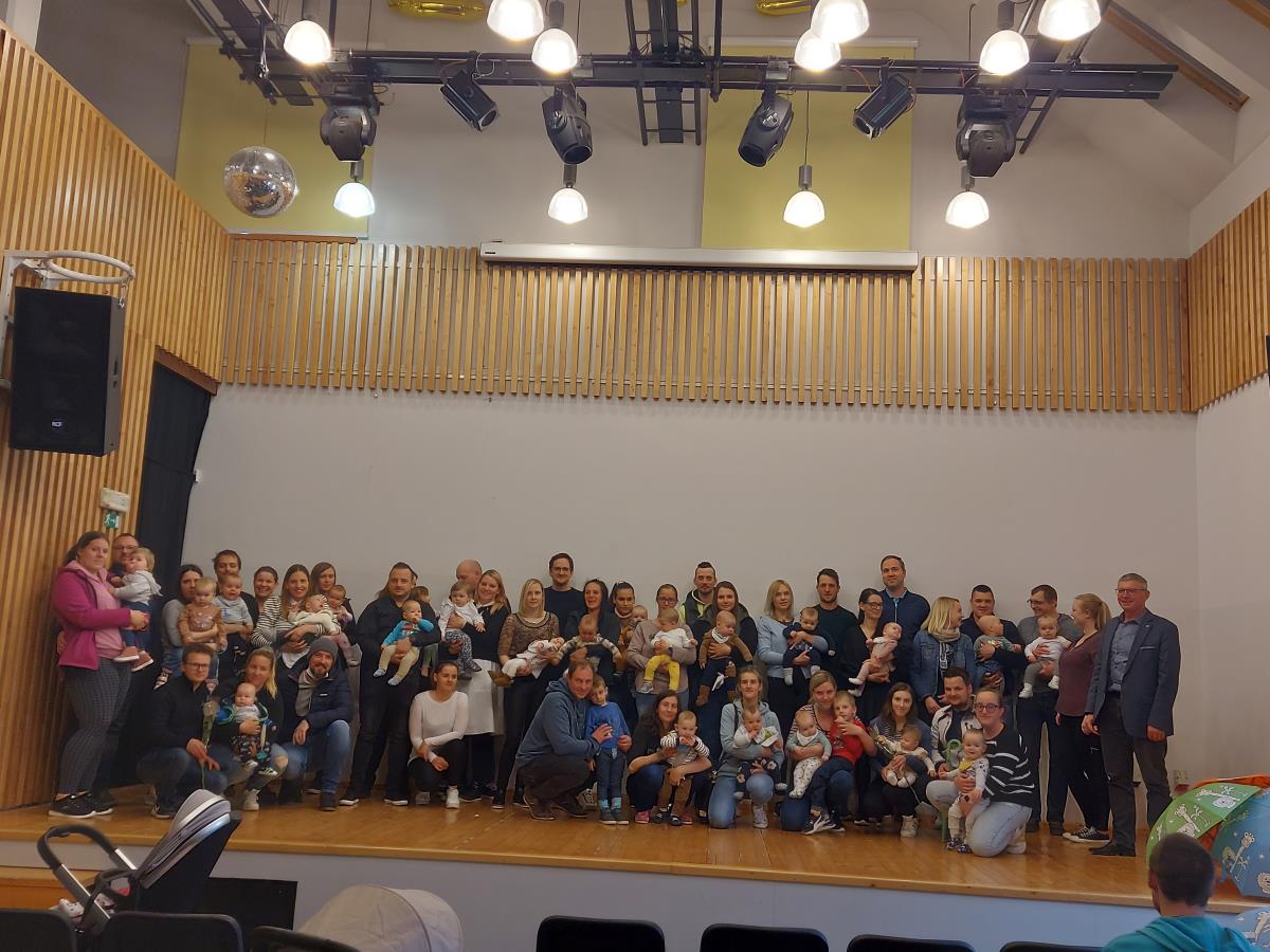 Popoldan je župan pozdravil še najmlajše prebivalce naše občine, 33 otrok, rojenih v preteklem letu. Pisani druščini 15 deklic in 18 fantkov s starši so zapeli in zaplesali otroci iz vrtca Sonček, katerim se bodo mali nadebudneži že kaj kmalu pridružili v povsem novih, svetlih in lepih prostorih prizidka k vrtcu. Župan je ob tej prisrčni priložnosti seveda vsem iskreno čestital, jim predal simbolična darila, mladim mamicam pa, v počastitev meseca žensk, še vrtnico. Vsaka družina bo v dar prav tako prejela sadiko drevesa gorskega javorja.